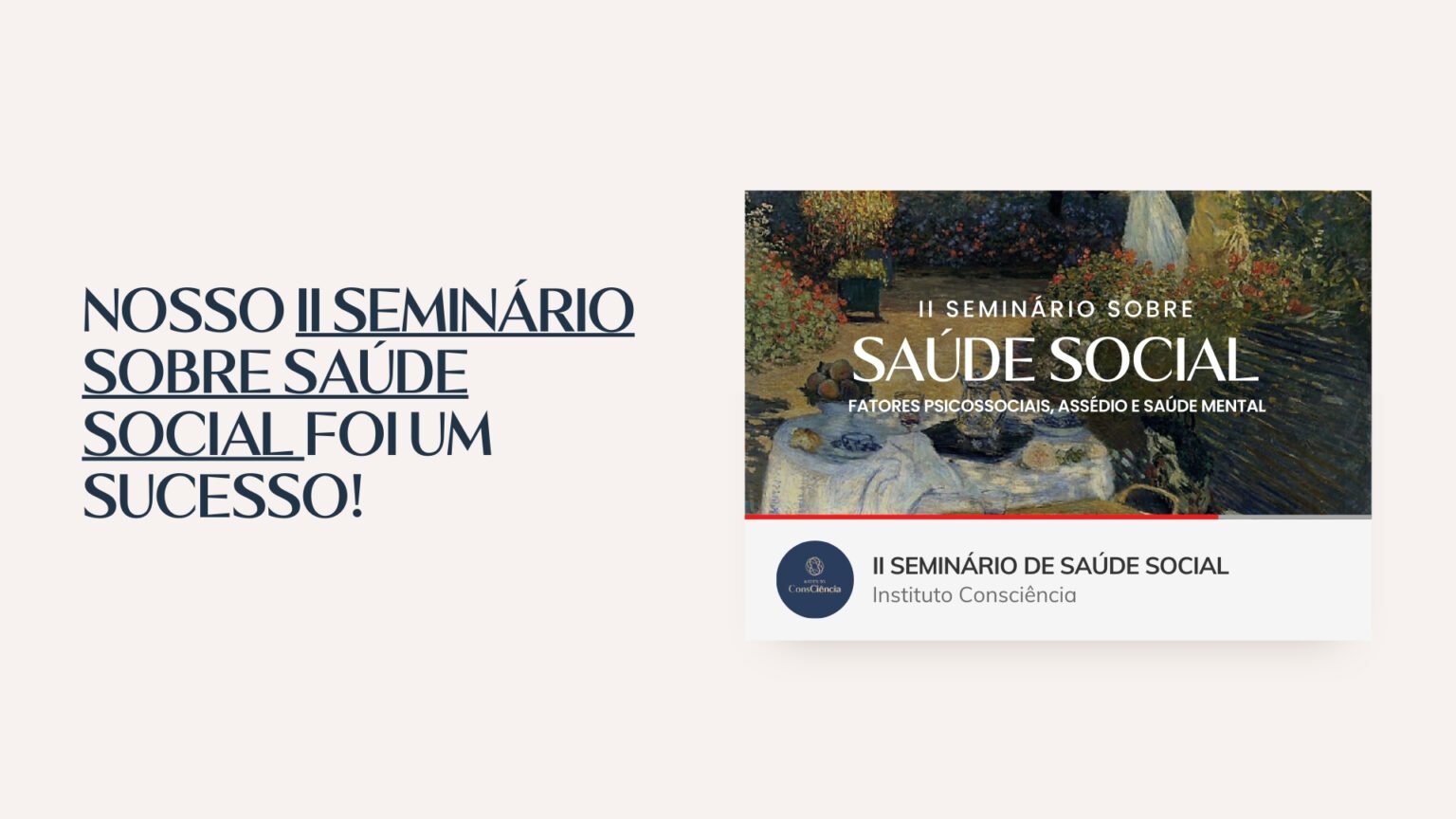 O II Seminário sobre Saúde Social, promovido pelo Instituto Consciência, reuniu especialistas e participantes de diversas regiões do Brasil para discutir temas centrais relacionados à saúde mental no trabalho, fatores psicossociais e prevenção do assédio nas organizações.